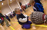 Ene mand formåede Mads Bischoff, der har specialiseret sig i afrikansk trommedans at aktivere de mange børn og voksne i en hel klokketime.